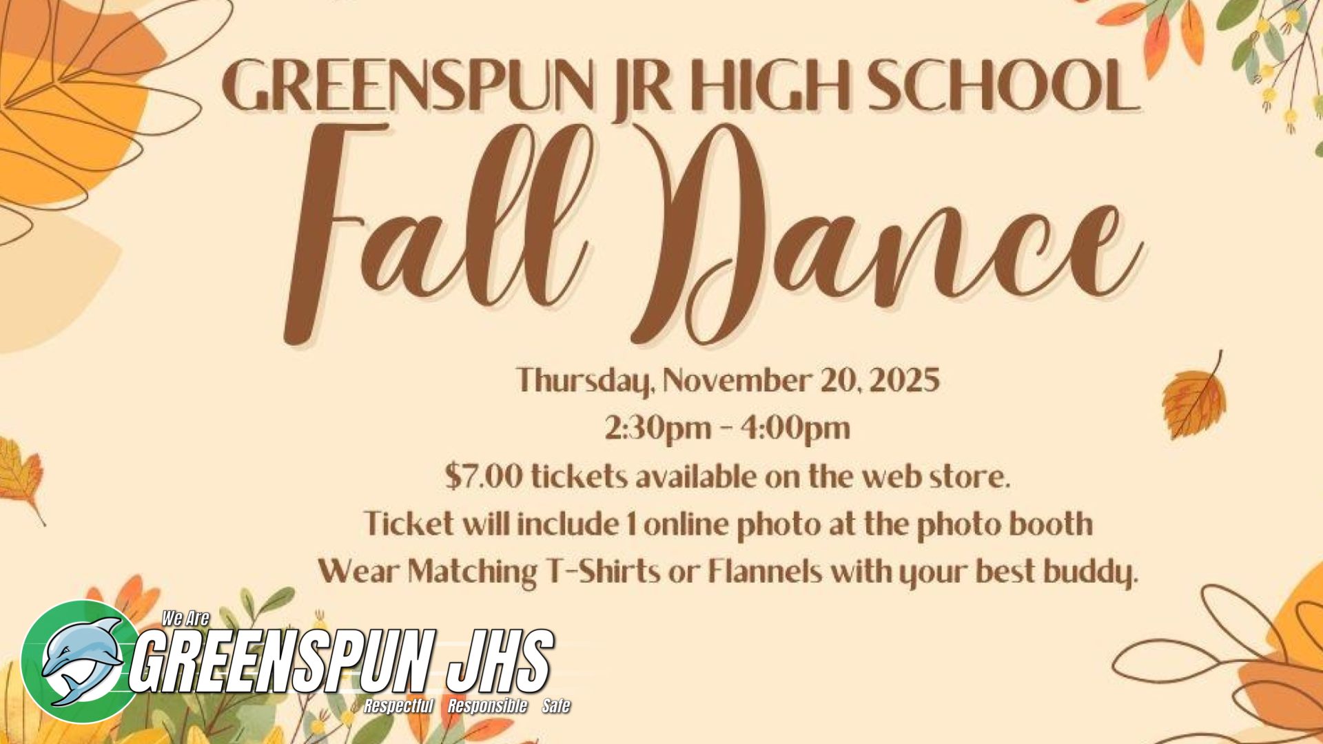 Fall Dance 2025: Come join us for our Fall Dance on November 20, 2025 from 2:30 to 4:00pm!