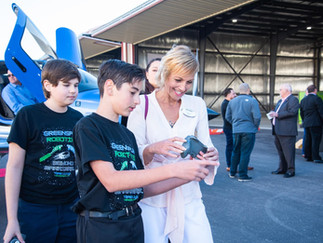 Robotics: Last week, three of our robotics students heading to the World Championship joined Ms. Juliano in representing Greenspun at the Henderson Chamber of Commerce-HDA (Henderson Development Association) Mixer. This event took place at All in Aviation at the Henderson Executive Airport and was attended by Henderson community business leaders. As their "adopted" robotics program, they are working to raise money for our program through their "Biz and Bots" fundraiser. We feel honored to be highlighted in this way by our community leaders and thank them for their enthusiastic support. Cole Myers, Jesse Sundstrom, and Zachary Bellante represented Greenspun Robotics, and their knowledge and professionalism wowed those in attendance. We are grateful for the Henderson Chamber and look forward to proudly wearing their logo at the Vex World Championships this April in Dallas.