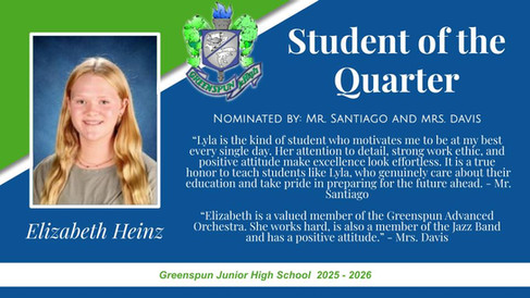 To our parents and guardians—thank you for the support you give your children each day. And to our Straight A, Outstanding Citizenship recipients, and Students of the Quarter—congratulations! You are a shining example of what excellence looks like at Greenspun!