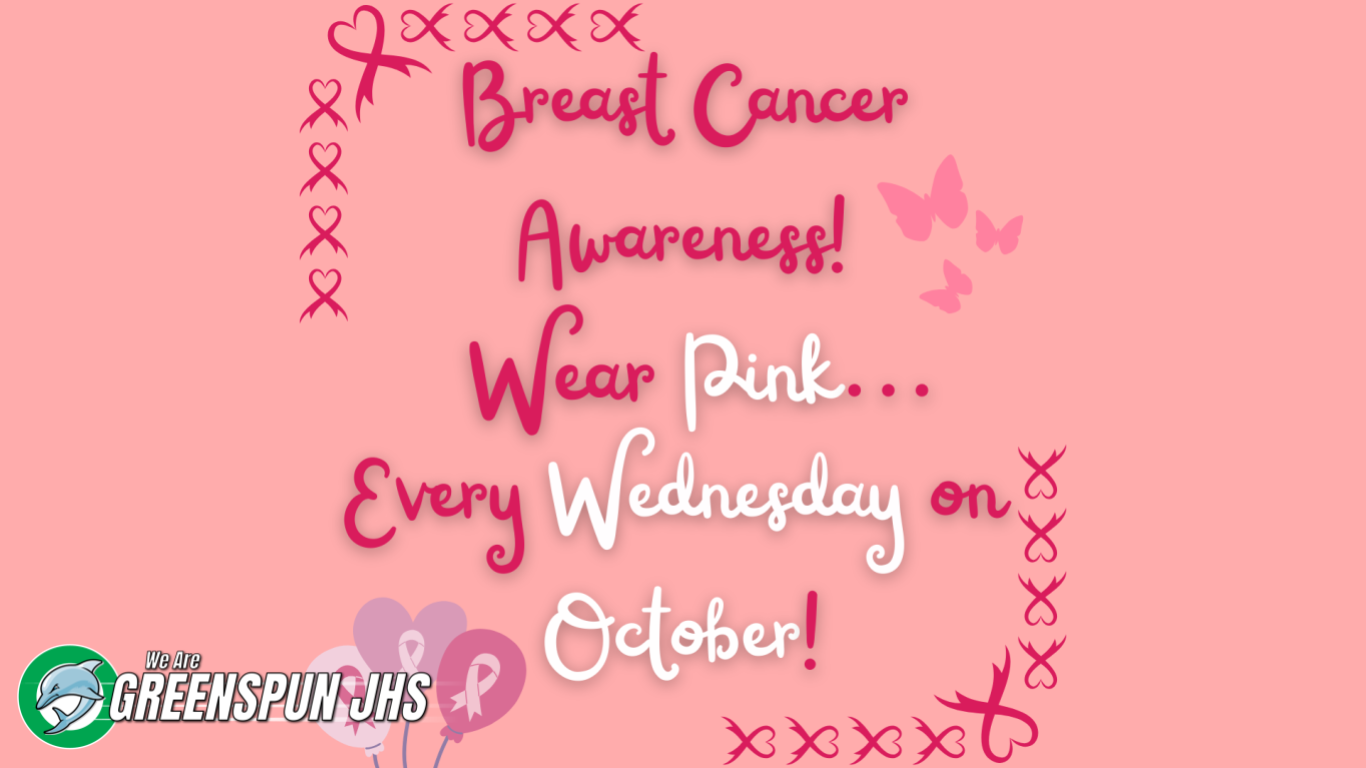 Breast Cancer Awareness Month: Please show your support for Breast Cancer Awareness month by wearing PINK every Wednesday in October.
