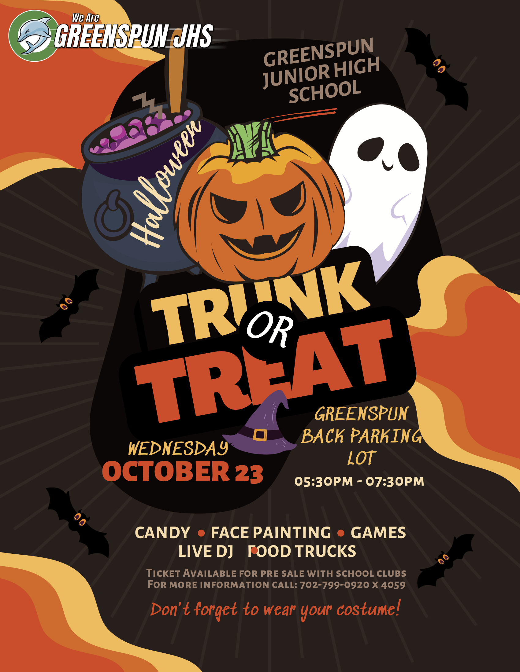 I am so excited to be a part of a new tradition at Greenspun, our first ever Trunk or Treat night, Oct. 23, from 5:30-7:30, in the school’s back parking lot.