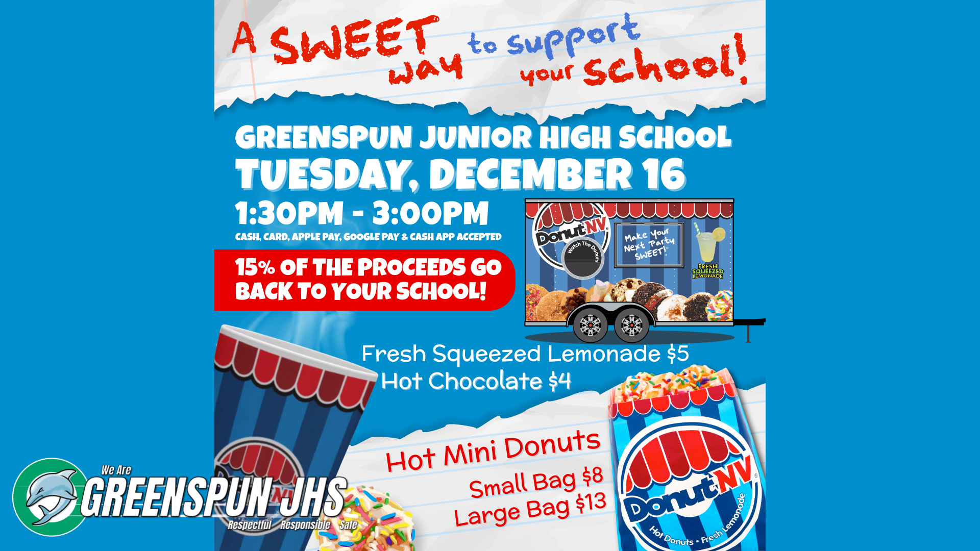 BIRTHDAY GREETINGS: Do you want an easy and fun way to celebrate your child's birthday at school? For $15, we will display a short message on the outdoor digital marquee to help celebrate the day. Additionally, a bag of treats and a personalized birthday card will be delivered to your child during the school day. All funds raised help support Greenspun clubs and activities. CLICK HERE to submit a birthday greeting for your child!